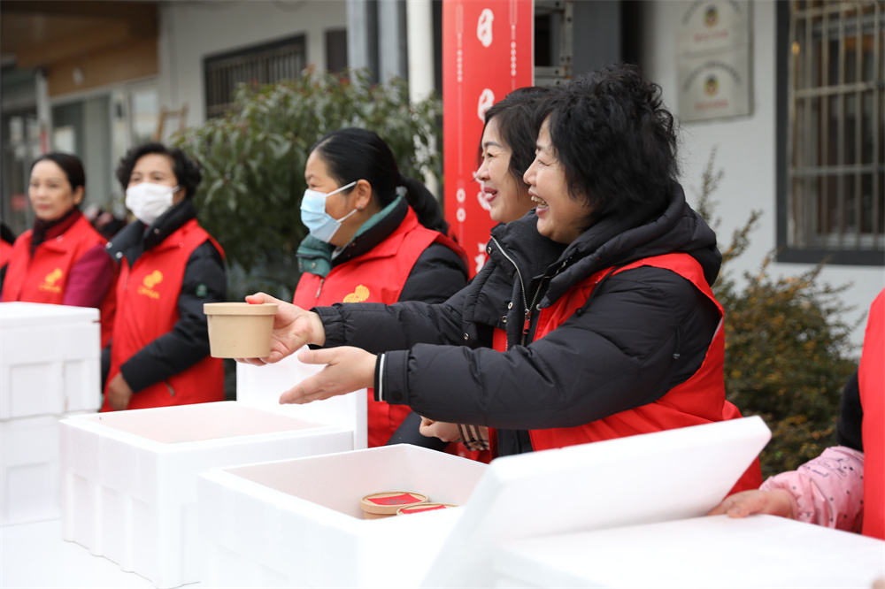 “阿婆,喝粥啦!”女企业家协会的志愿者们也没有忘记白沙路街道的33位百岁老人。她们走进老人们的家中,亲手将腊八粥送到老人手中,与他们共度佳节。老人们品尝着香甜的粥,脸上绽放出满足的笑容。